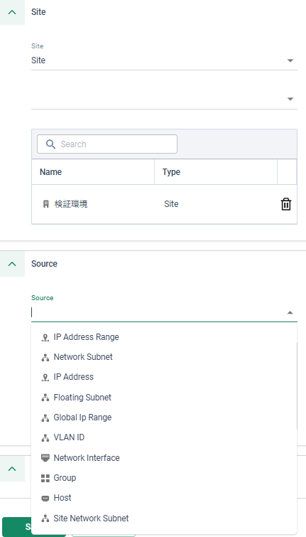 下画像の通り、Siteを指定したあと、SourceとしてIPアドレスレンジやVLAN IDなどで送信元を限定することができます。