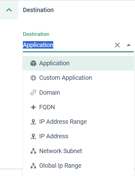 今回のアップデートでは、下画像のように選択肢が増え、FQDNのほか、Custom Applicationやサブネットでも指定可能になりました。