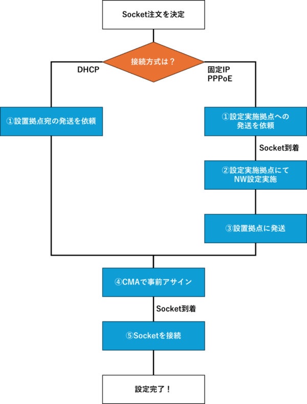 これまでの準備が完了していれば、利用する拠点にSocketが到着した後