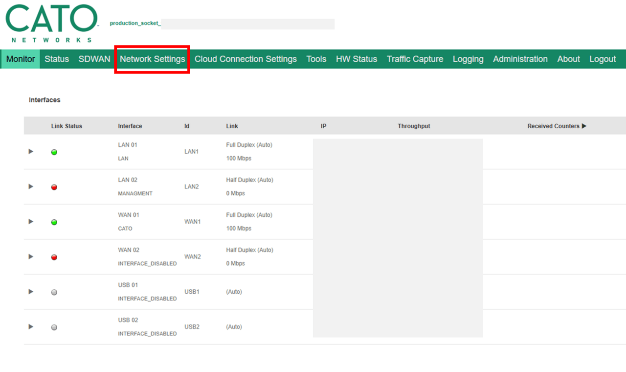 Socket Web UIが開くので、上のタブから「Network Settings」に移動します。