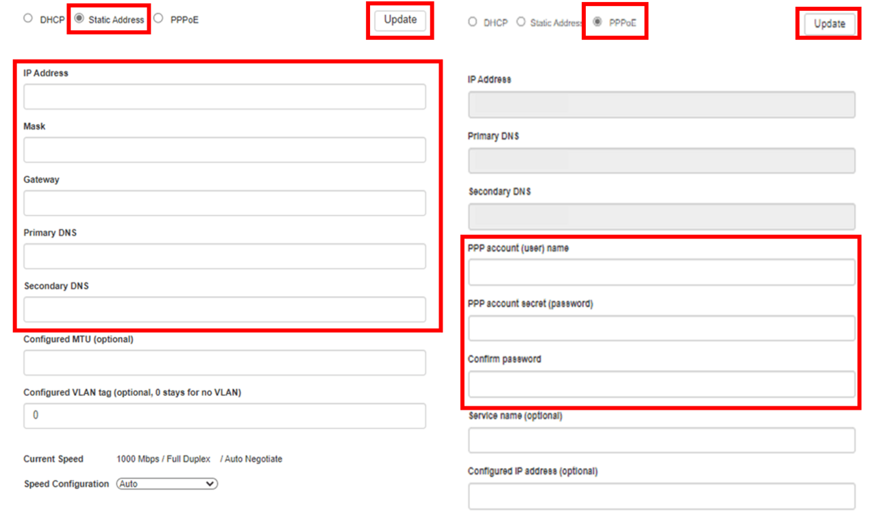 Cato Socketは、DHCP / 固定IP / PPPoE の3種類のWAN接続方式に対応しています。