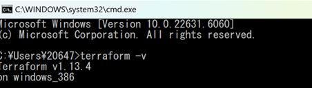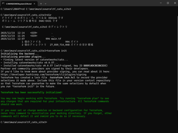 コマンドプロンプト上で先ほど作成したmain.tfのフォルダに移動してください。
