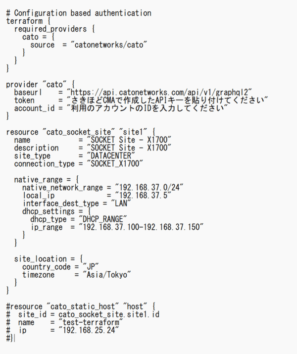 本記事では、TerraformのCato Providerを利用してCato Cloud上にサイトを構築する手順を解説します。