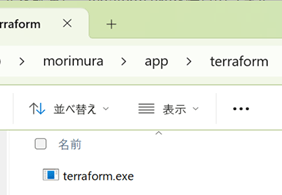 Zipファイルとしてダウンロードされるので、任意のフォルダですべて展開してください。ここでは[C:\morimura\app\terraform]としています。
