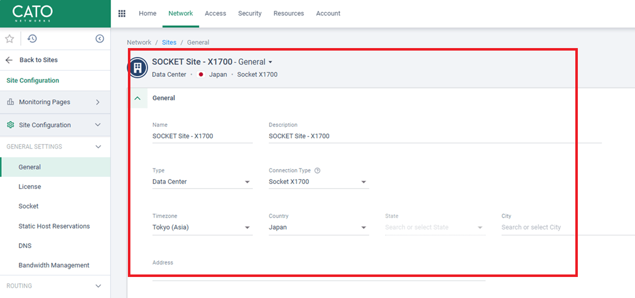CMAにログインし、[Network]→[Sites]とクリックしてください。作成された[SOCKET Site – X1700]をクリックしてください。