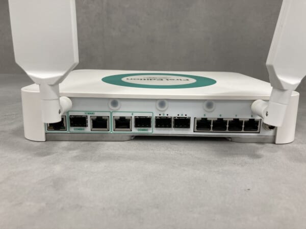 - ポート数: 合計8つのLANポートを搭載。ポート1~4は1Gbps、ポート5~8は2.5Gbpsに対応しているのと、標準でSFPポートを搭載しているため、高速なLAN環境を構築できます。