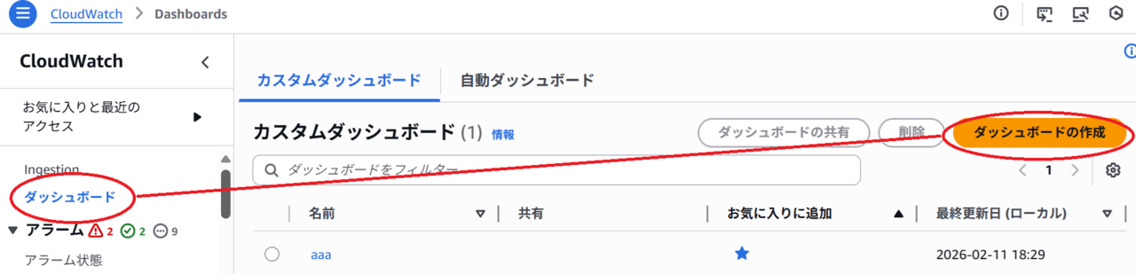 先ずはダッシュボードの作成です。要件に応じて適当な単位で作りましょう。(サーバ毎、VPC毎、案件毎、など)