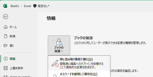 Excel にて「常に読み取り専用で開く」を設定