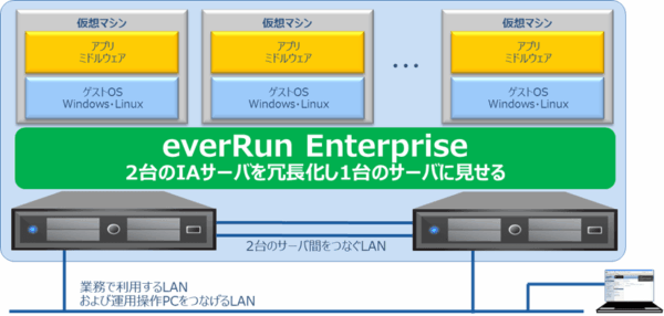 everRunはStratus社が提供する高信頼性仮想化システムを実現するソフトウェアソリューションです。