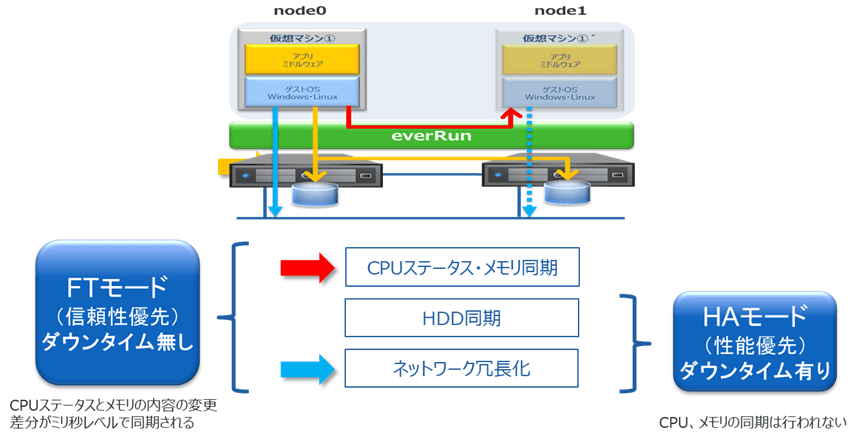 1. FT(Fault Tolerant) CPUステータス・メモリ同期 / HDD同期 / ネットワーク冗長化