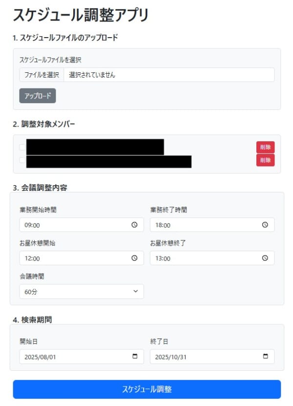 →実際の現場ではわざわざファイルをエクスポートすることはないので、直接GoogleカレンダーやOutlookと連携できたらなーと考えています - 作業などの打合せ以外の予定を内容を見て判定(件名に【調整可】の記載がある)