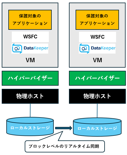 ・異なる物理ホスト間でのみ、クラスター環境を構成可能。