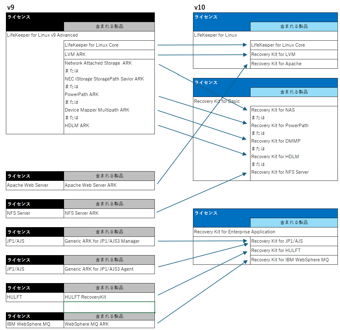 「LifeKeeper for Linux」には、v9の時と同様にLifeKeeper Coreと呼ばれるLifeKeeper本体とRecovery Kit for LVMが含まれますが、さらにこれまで単体のARKとして提供されていたRecovery Kit for Apacheが含まれるようになっている点が大きな変更点となります。