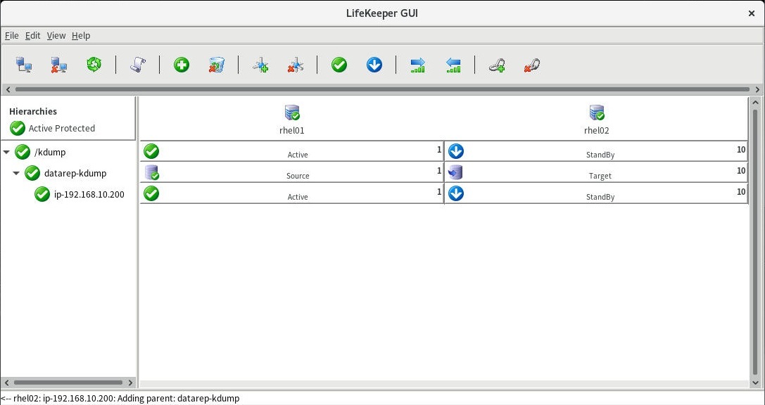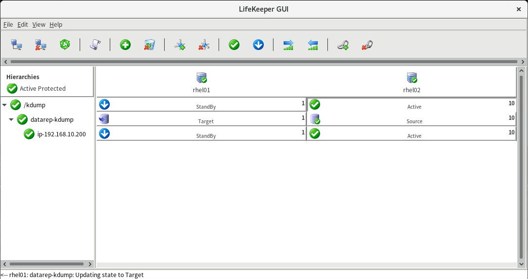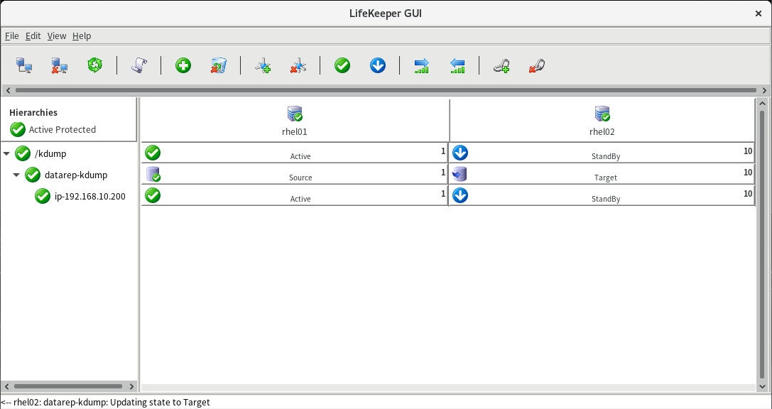 1.LifeKeeperGUIから、LifeKeeperのリソースが正常状態であることを確認します。