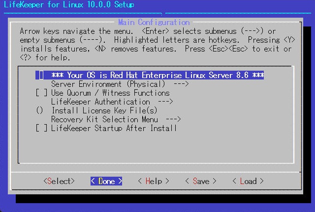 | [root@rhel01 ~]# mount /work/LifeKeeper_linux_10-0-0.img /media -t iso9660 -o loop mount: /media: 警告: デバイスは書き込み禁止です、読み込み専用でマウントします. [root@rhel01 ~]# cd /media [root@rhel01 media]# ./setup |