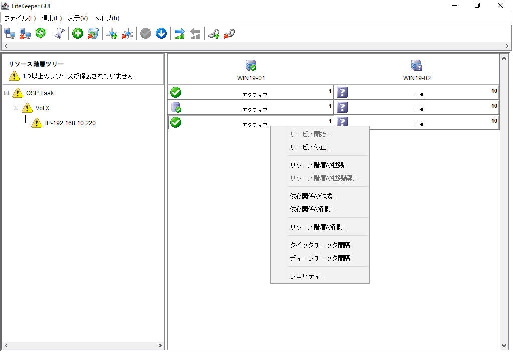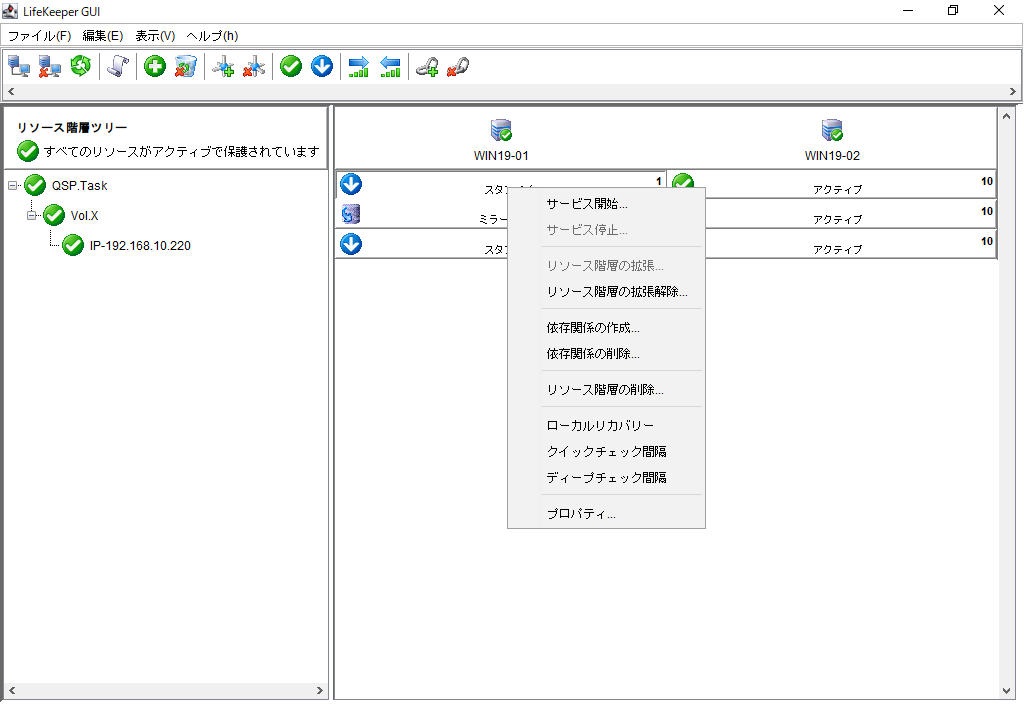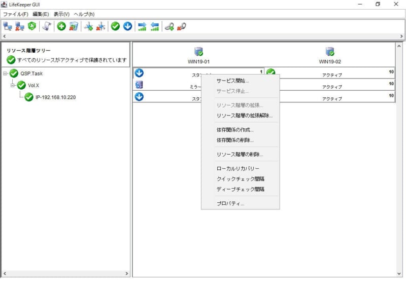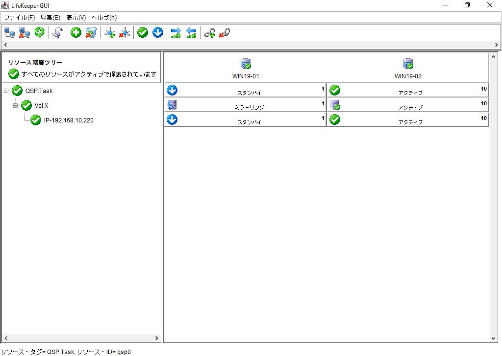 1.LifeKeeperGUIから、LifeKeeperのリソースが正常状態であることを確認します。
