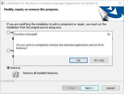 23.アクティブサーバの「プログラムと機能」から、ローカライズ言語サプリメント『LifeKeeper for Windows Localized Language Supplement』をアンインストールします。