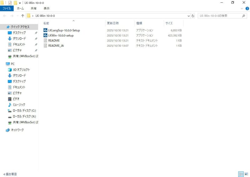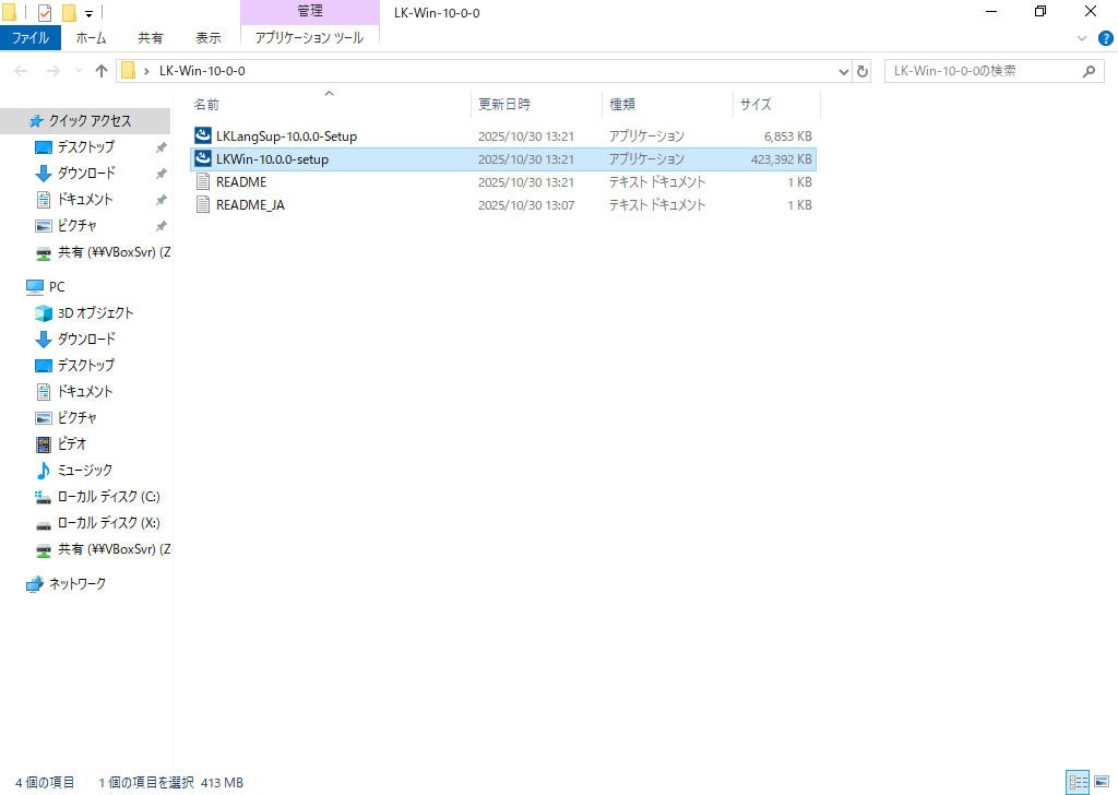 ローカライズ言語サプリメントインストーラー <デスクトップ>\LK-Win-10-0-0\LKLangSup-10.0.0-Setup.exe