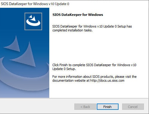 9.LifeKeeperのセットアップが完了しますので「Finish」をクリックしてDataKeeperのセットアップが開始されるのを待ちます。