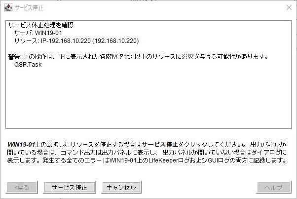 アクティブサーバ側のLifeKeeperGUIから「サービス停止」を実施します。