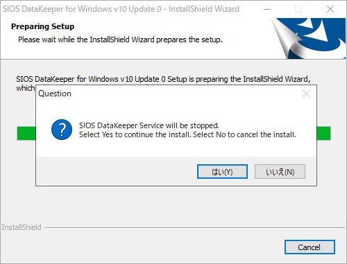 10.DataKeeperサービスの停止確認が表示されますので、「はい(Y)」をクリックしてセットアップを進めます。