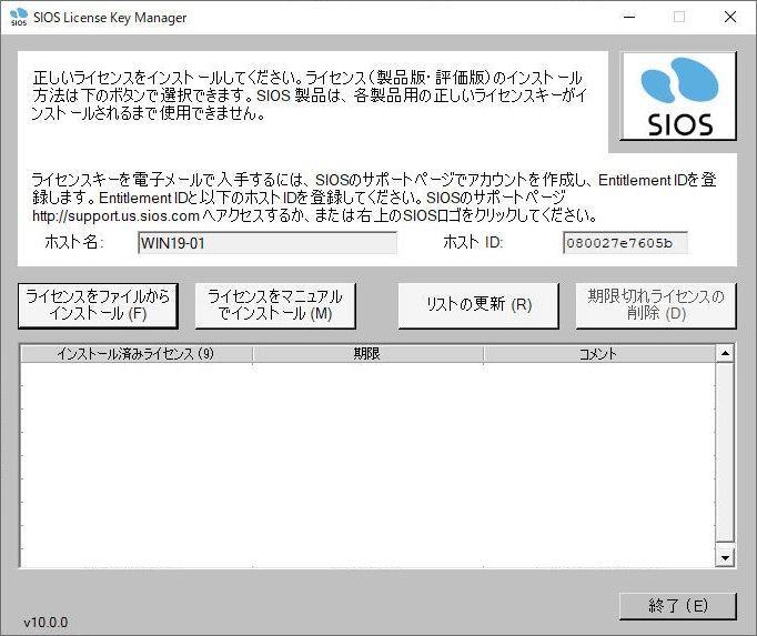 バージョンアップ後 = LifeKeeper for Windows v10.0