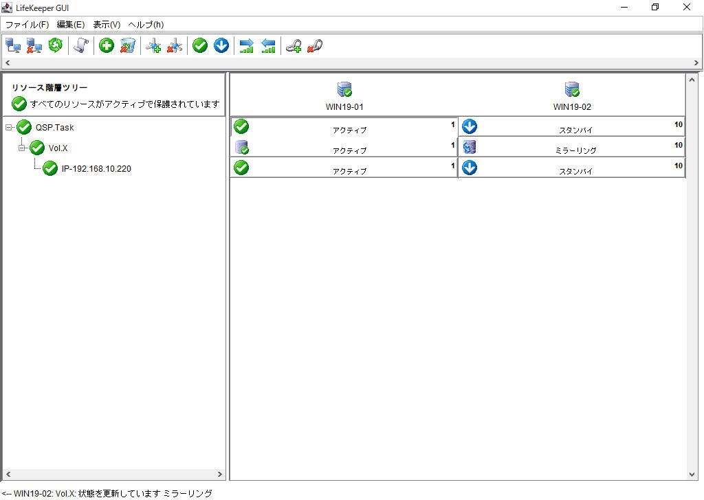 40.LifeKeeperGUI上のサーバステータスがそれぞれ正常であることを確認し、アクティブサーバ側にリソースをスイッチバック
