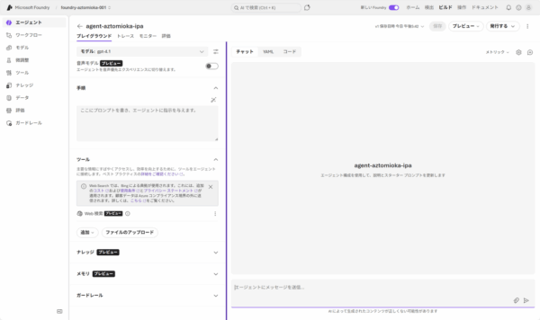 ラボ環境でFoundryを触る中で、「面白い。自分でもAIエージェントを作ってみたい」と思いが湧いてきました。