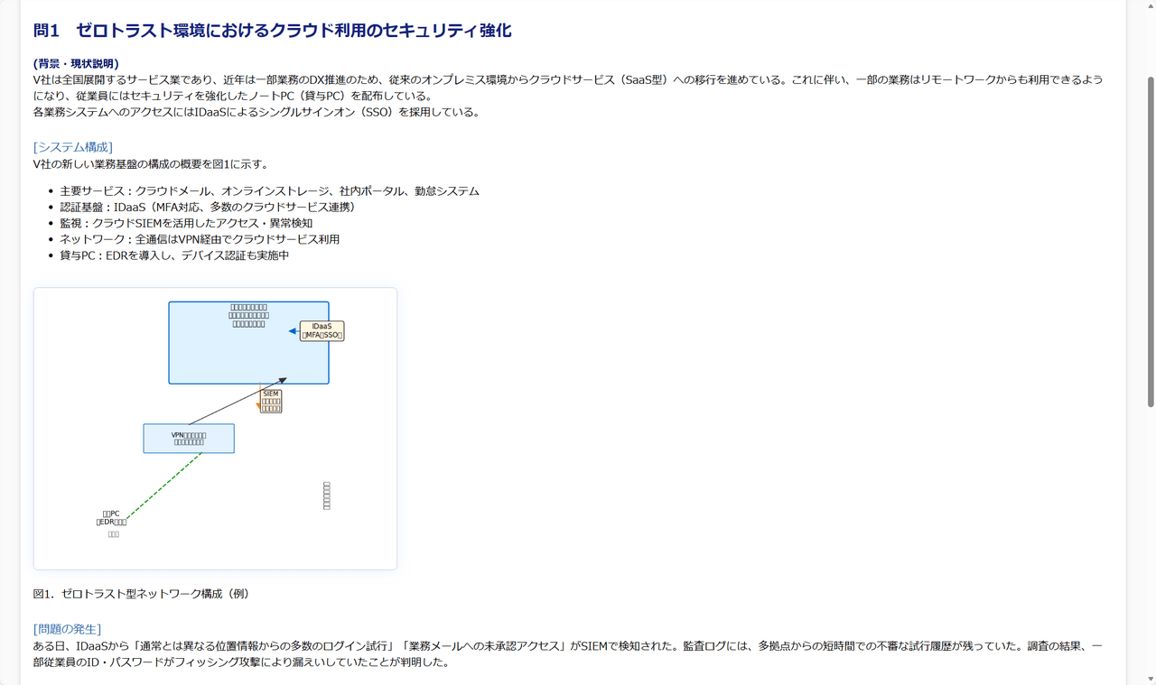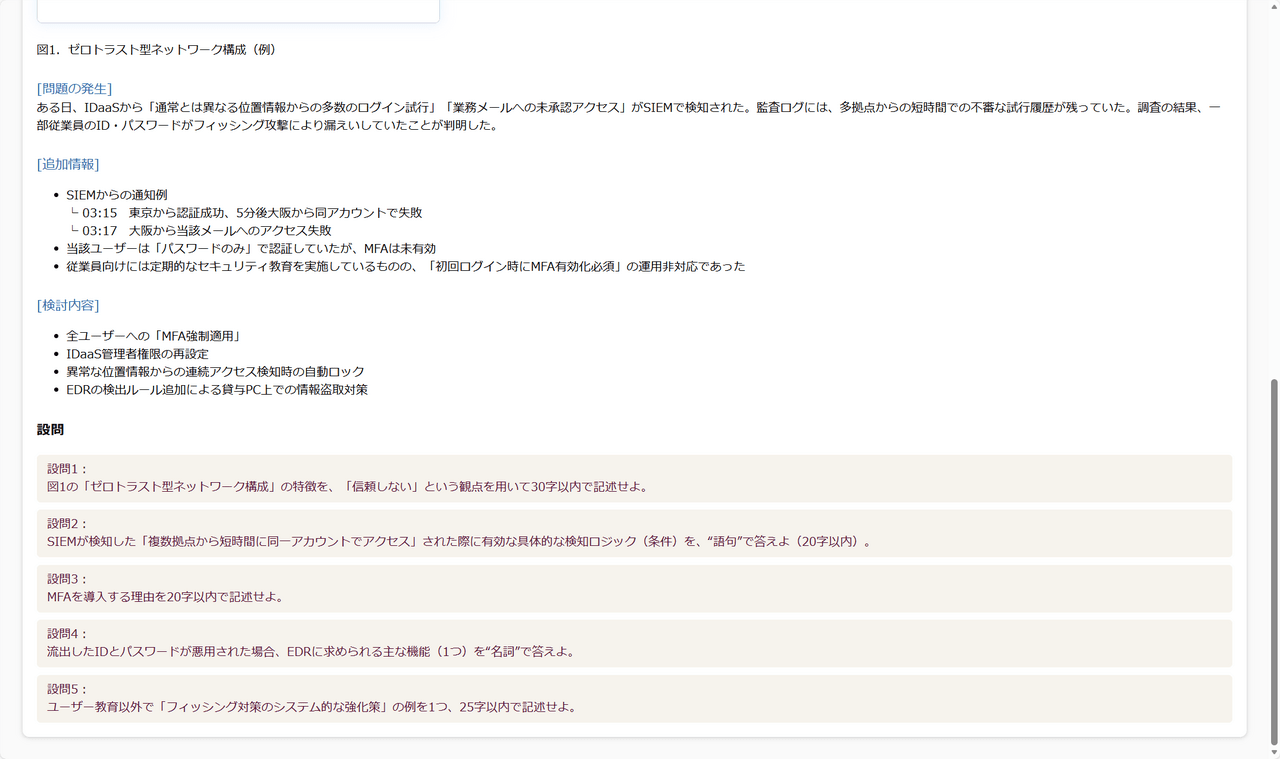 答え合わせとしてR7秋の本試験をみると、選択肢の中にゼロトラストとSIEMがあり全くダメとわけではなさそう。