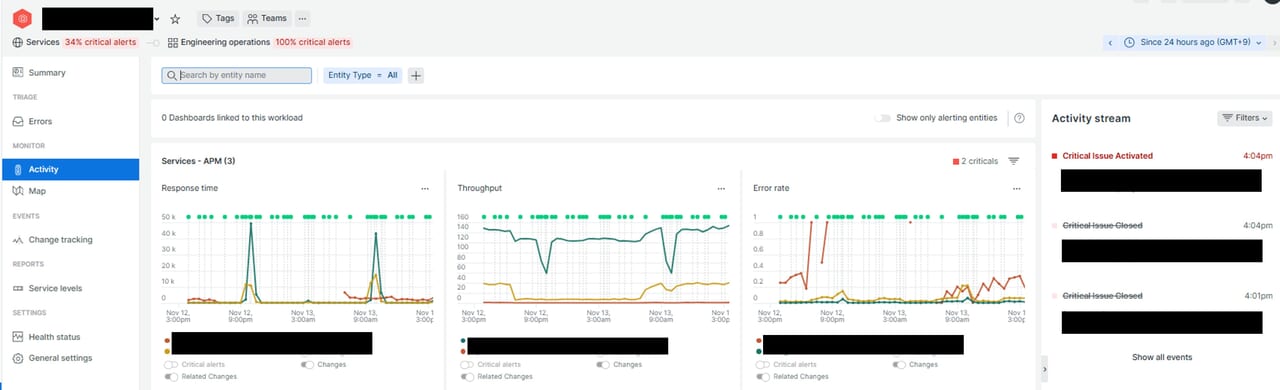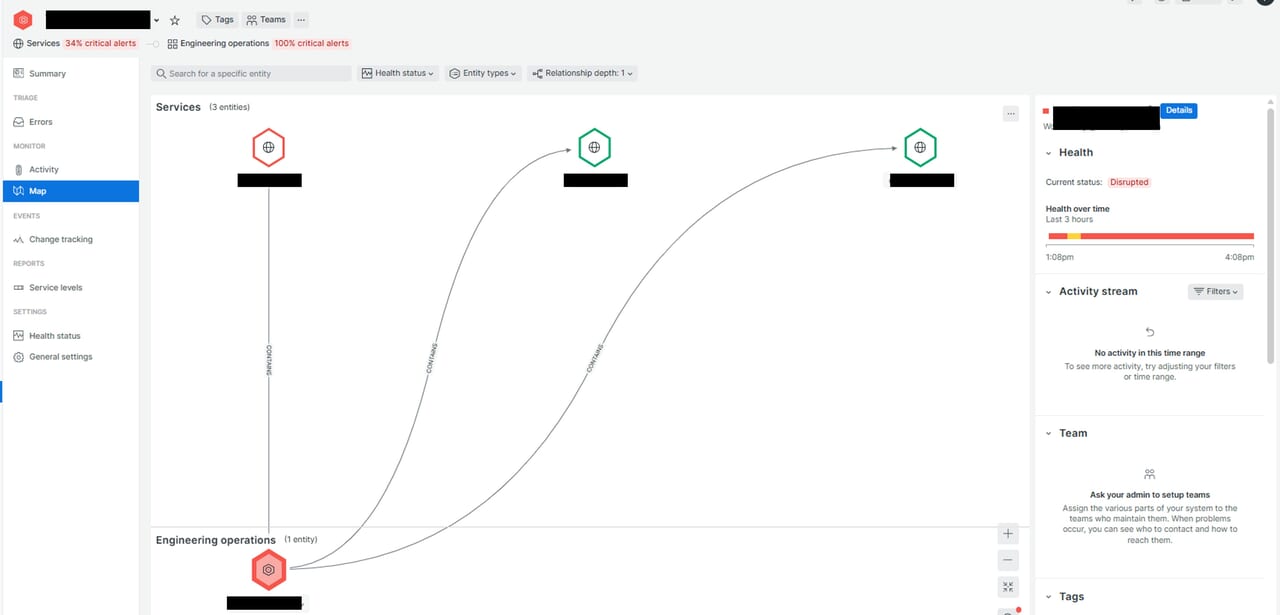 関連するエンティティをグループ化し、サービスやチーム単位で観測するエンティティを集約することで、問題の特定を効率化します。チームが管理するエンティティ毎にグループ化することで、定常的な健全性の確認や障害発生時に誰がどのシステムを対応しなければならないかを迅速に把握することができます。その結果、対応時間を短縮し、チーム間の連携につながります。