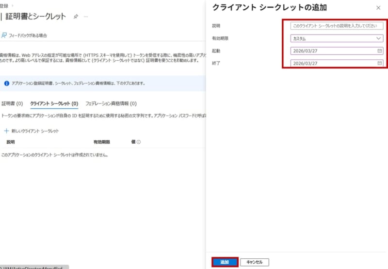 New Relic Azureインテグレーションでは、認証情報に必要となるクライアントシークレットが必要になります。クライアントシークレットには最大2年間の有効期限が設定できます。そのため、定期的なローテーションが必要となります。期限が切れた場合は、Azureインテグレーションの監視が停止しますので、運用対処を検討する必要があります。