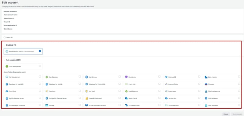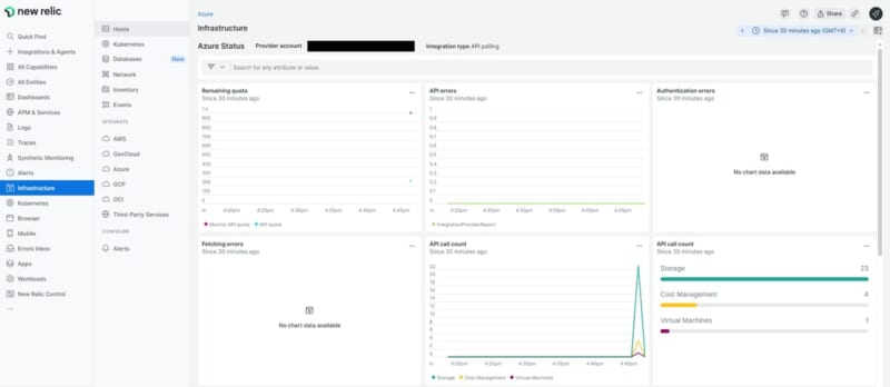 New Relic側のコストは、Azureインテグレーション自体に追加料金がかかることはありません。Azureからメトリクスデータが収集されるため、データ量が増加となります。契約しているプランによってはデータ量を超過する可能性があります。