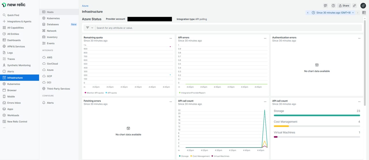 Azure側のコストは、公式ドキュメントに記載通り、コストは発生します。New Relicによる定期的なポーリング間隔でAPIが呼び出されます。そのため、ポーリング間隔APIの呼び出し回数により、APIの課金に影響します。