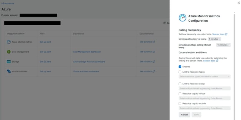 Azureとのインテグレーション完了後、監視したいサービスを追加・削除したい場合や、ポーリング間隔を変更したい場合の手順について設定します。