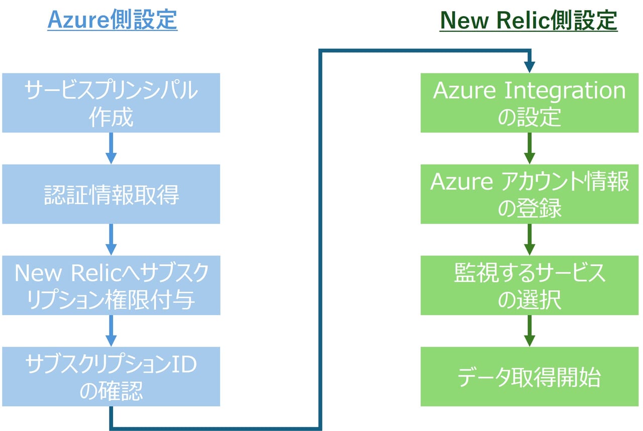 本記事では、Azure側で必要な情報を設定した後、New Relic側でインテグレーションを有効化するまでの手順を解説します。