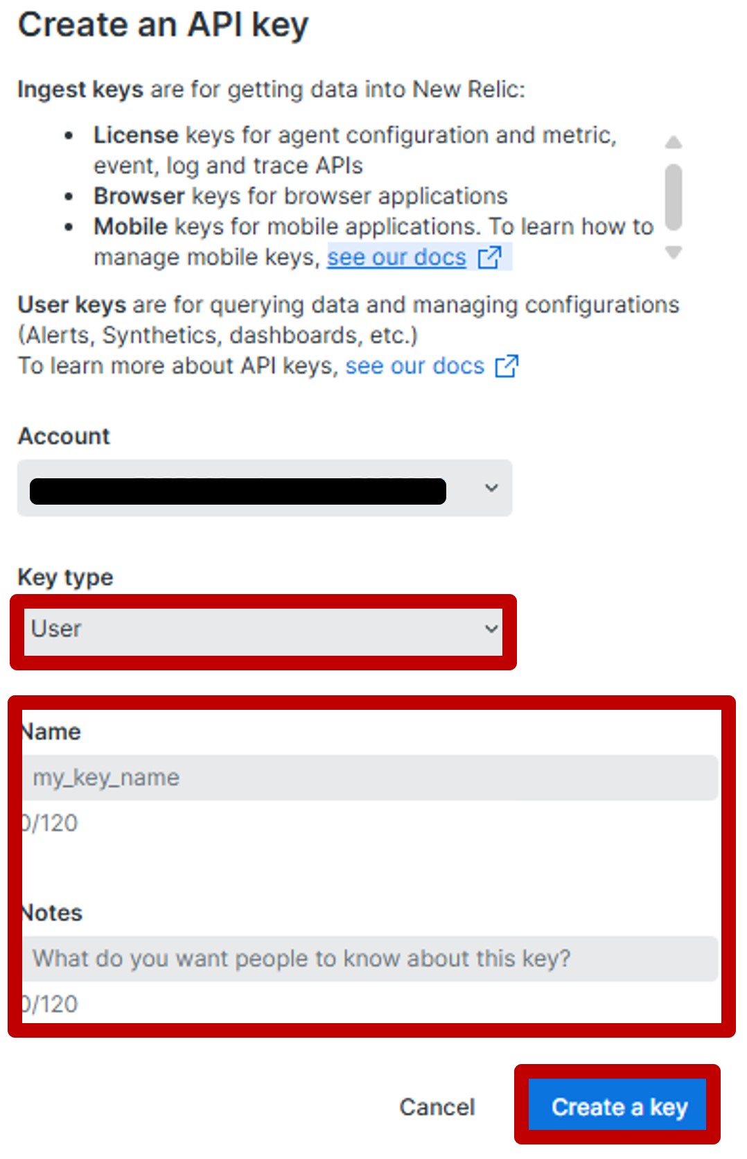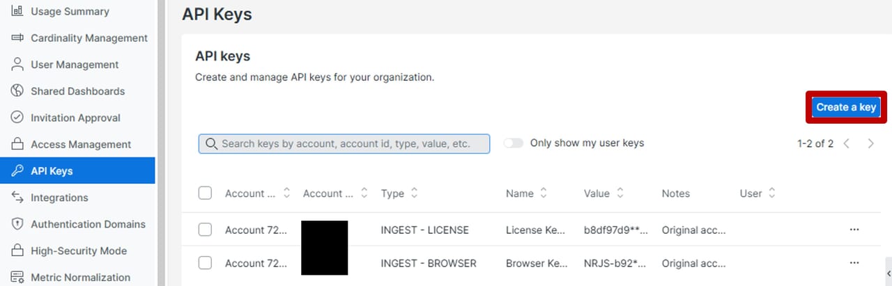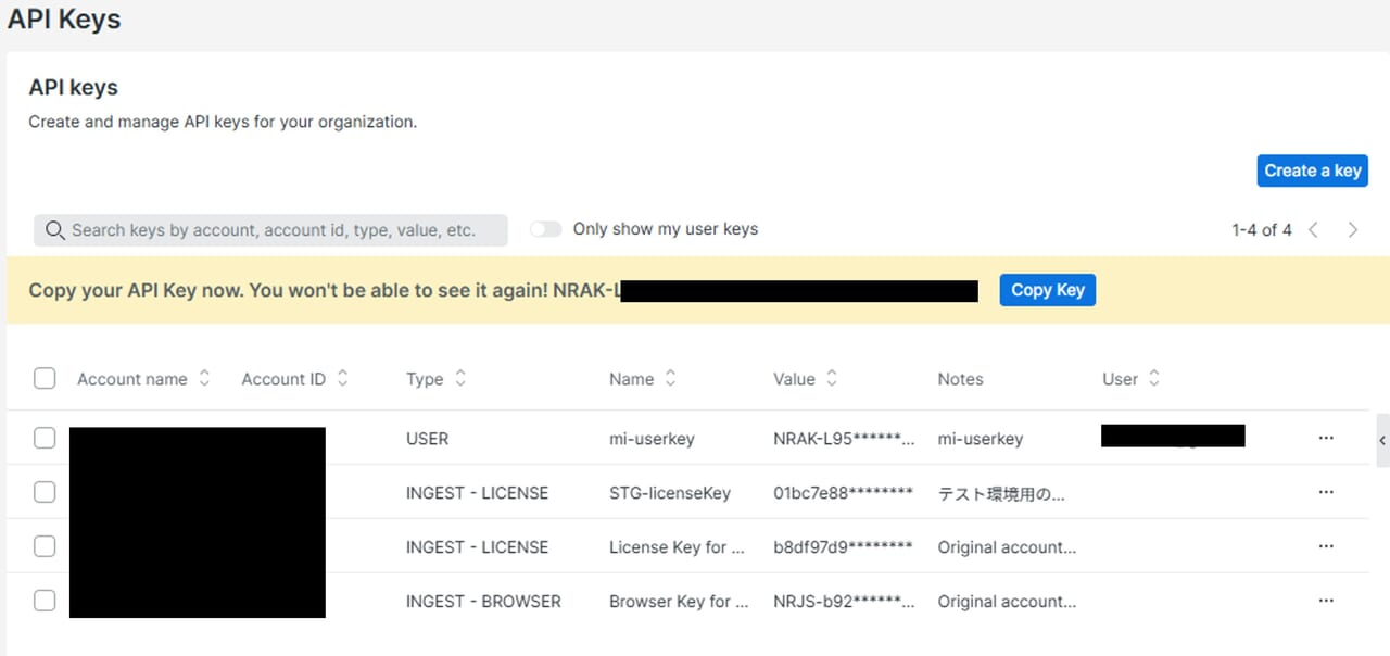 ライセンスキーはアカウント単位で管理されるため、誰が作成したかはNew Relicのコンソールから確認できません。命名規則を設けるか、備考欄にどのような用途の鍵なのかを記載しておくことで鍵の管理がしやすくなります。以下の手順にて作成ができます。