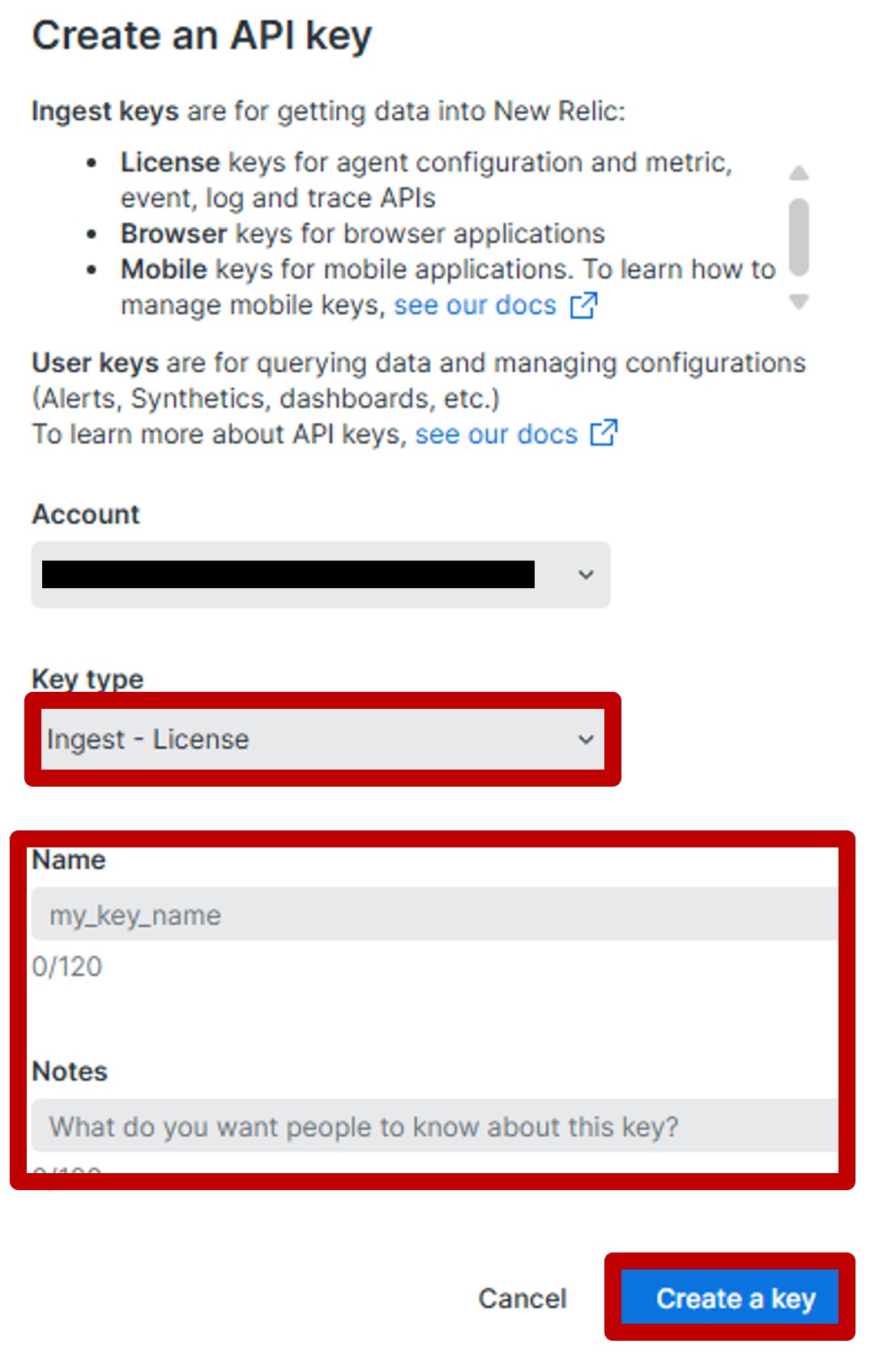 | Ingest – License Key | New Relicにデータを送る「入口の鍵」。