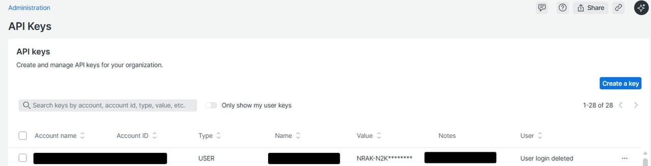ユーザーキーはユーザー単位で管理されるため、誰が作成したかNew Relicのコンソールから確認できます。以下の手順にて作成ができます。