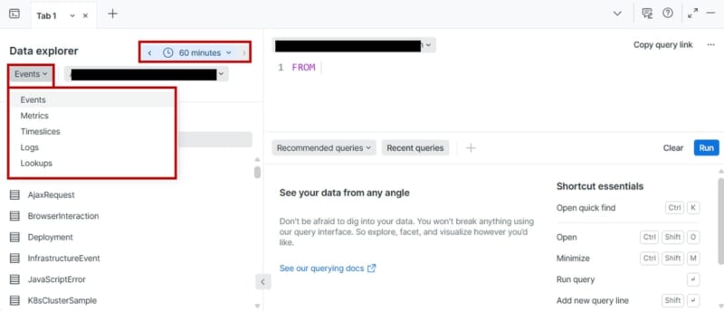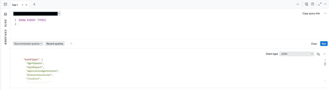 アカウントごとに有効化している機能が異なるため、一概にどのデータタイプが使えるか言えません。例えばInfrastructureエージェントを導入している場合は、Systemsampleが使えます。APMエージェントを利用していない場合は、Transactionなどを利用することができません。対象のアカウントでどのデータタイプを使用できるかは以下のSHOW EVENT TYPESコマンドを実行することで確認できます。または、データエクスプローラを使用して検索することができます。