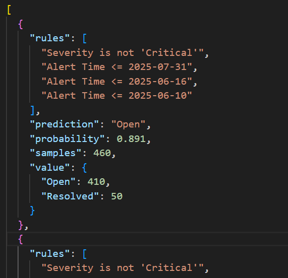 今回の実装では通常の決定木とは別で、決定木の結果を生成AIに解釈してもらうためのルールテキストをJSONで生成します。