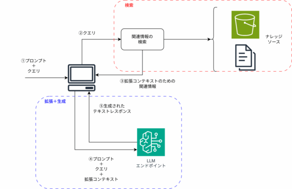 要点は、LLMのパラメータに内蔵された知識だけに依存せず、推論時に必要な情報を動的に取り込む点にあります。AWSブログでも、RAGについて下記のように説明されています。