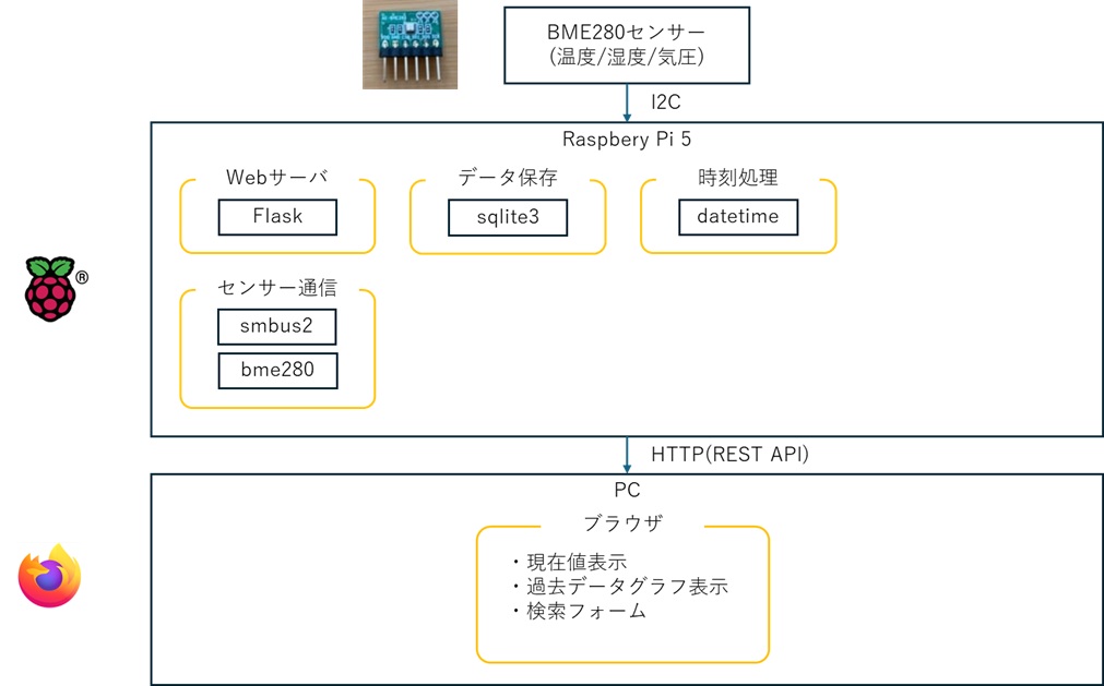 | Webサーバ | Flask | 軽量なWebフレームワーク。センサー値や予測結果をWebアプリとしてブラウザに表示。 |