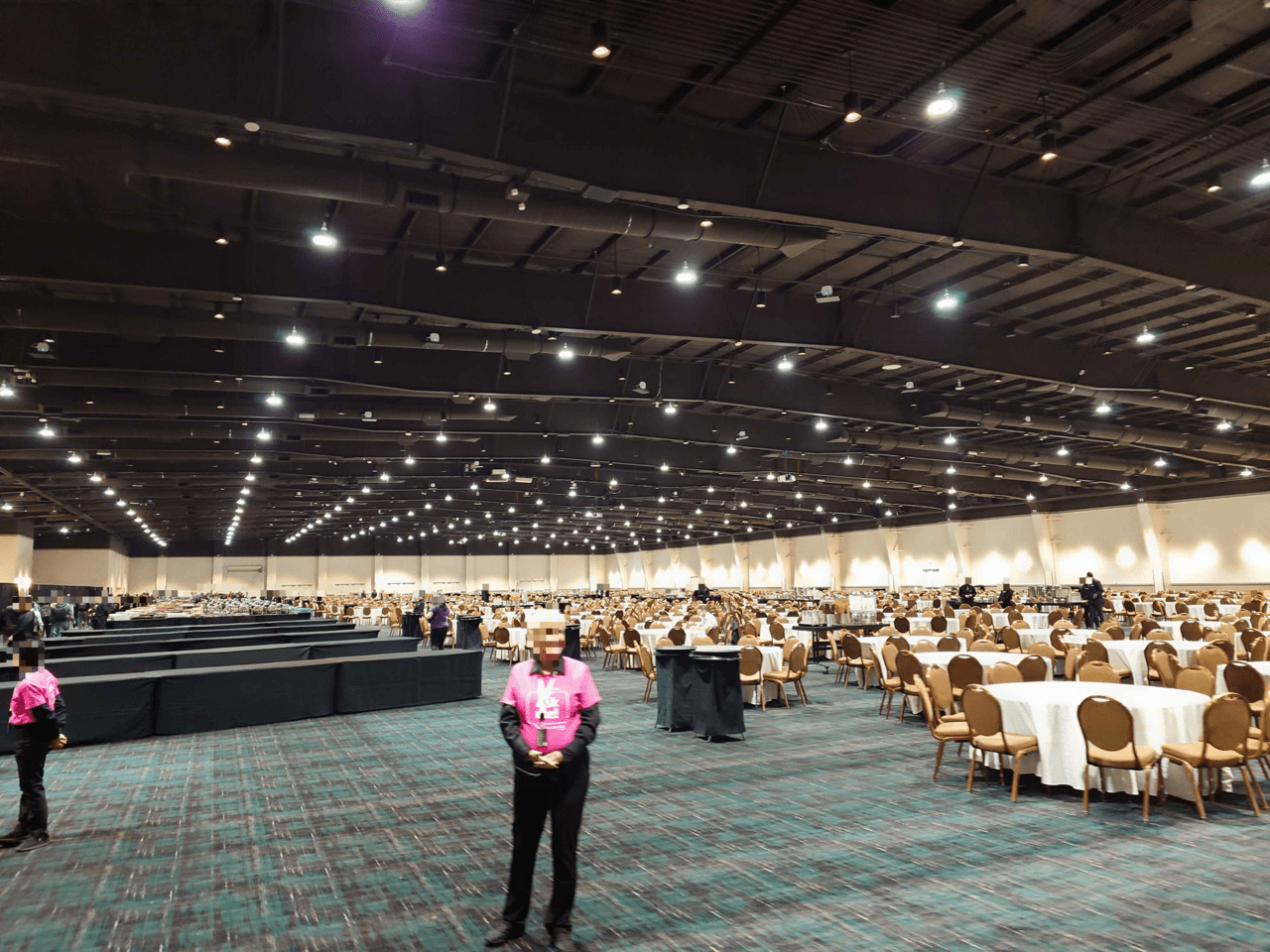 初参加で会場も広いため、迷わないかがとても心配でしたが、とても多くのスタッフの方の案内もあり、迷うことなく会場まで朝食会場までたどり着くことができました。