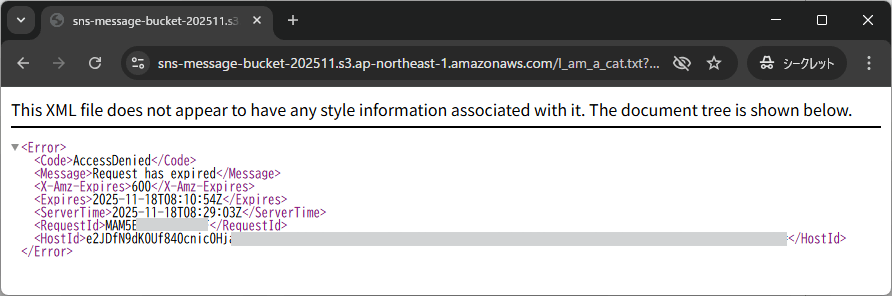 有効期限を設定しない場合は、既定で1時間有効の署名付きURLが発行されます。