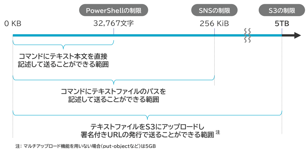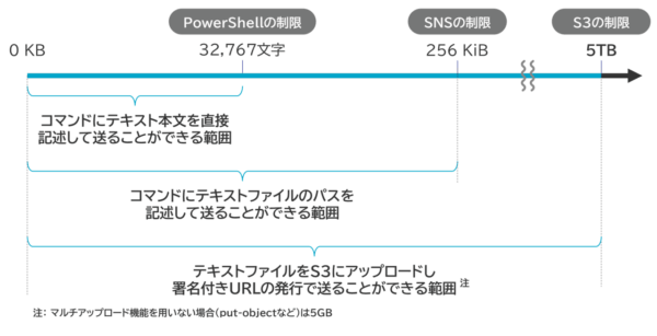 S3を用いることで、より大きなテキストファイルを送ることが可能になりますね。
