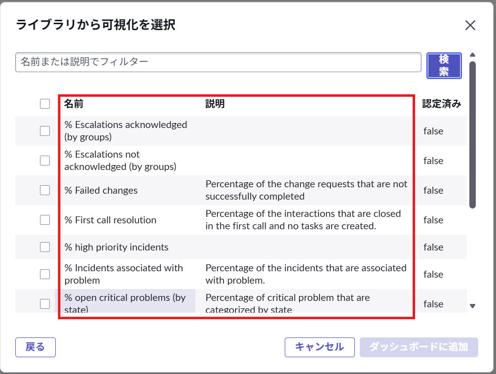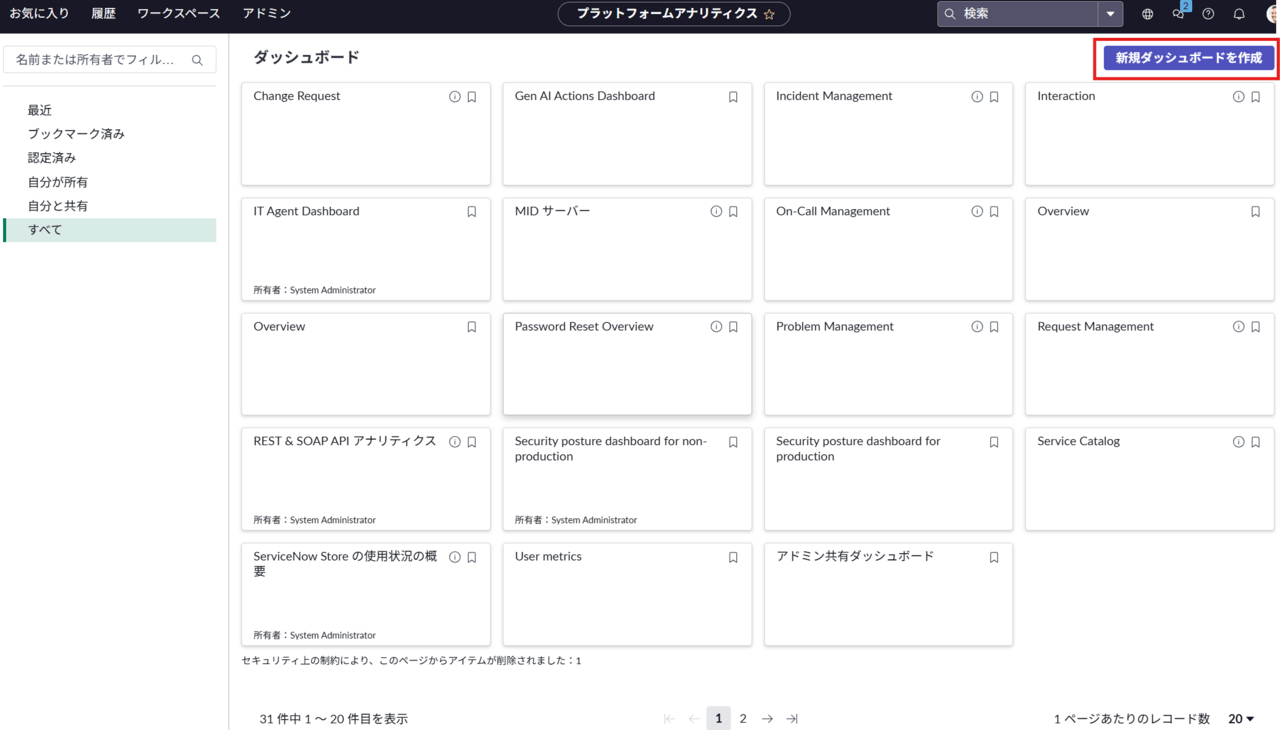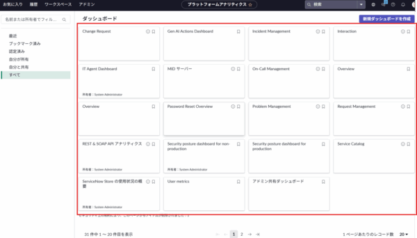 ServiceNowには導入時点で複数のダッシュボードが準備されています。