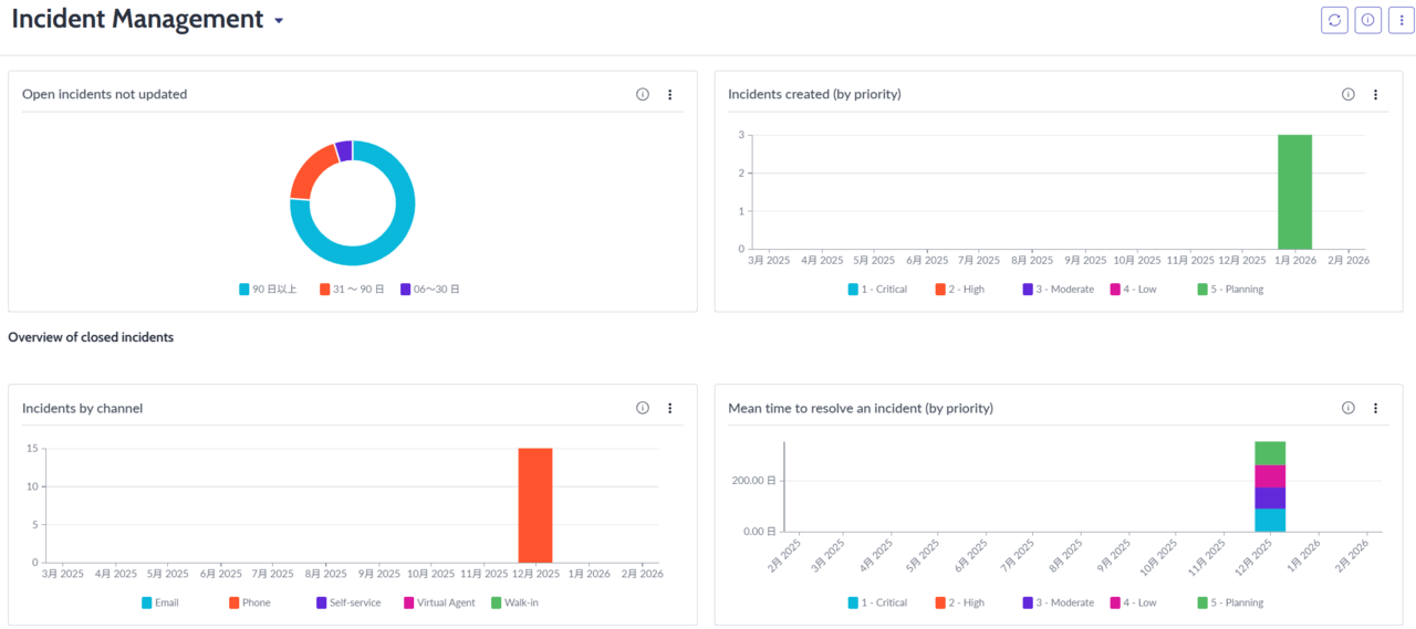 ④用途に応じたダッシュボードをクリックします。(ここでは例としてIncident Management)