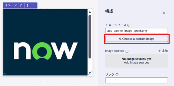 画面右側に構成画面が表示されますので、「Choose a custom image」をクリックして表示させたい画像を選択します。