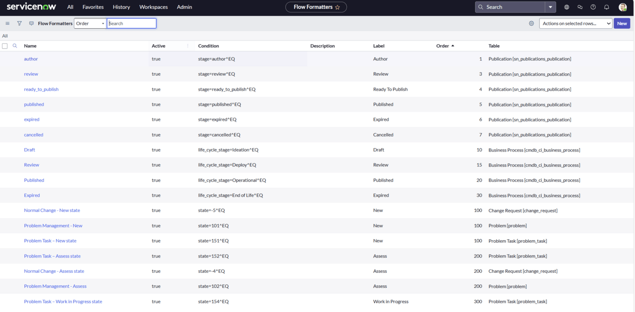テーブル名「sys_process_flow」からアクセスし、以下のようなテーブルを表示しましょう。