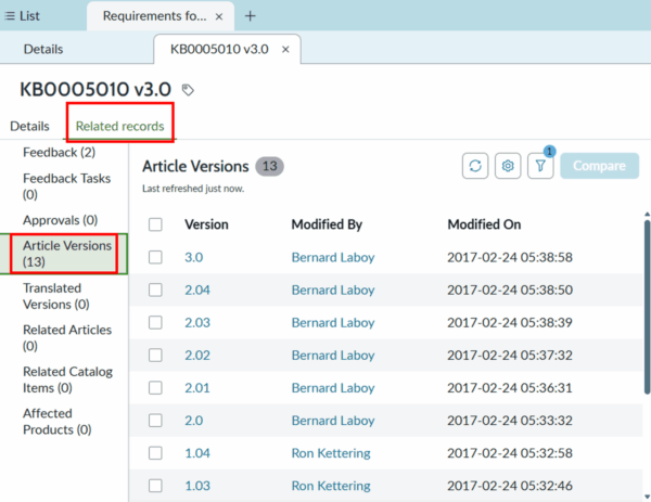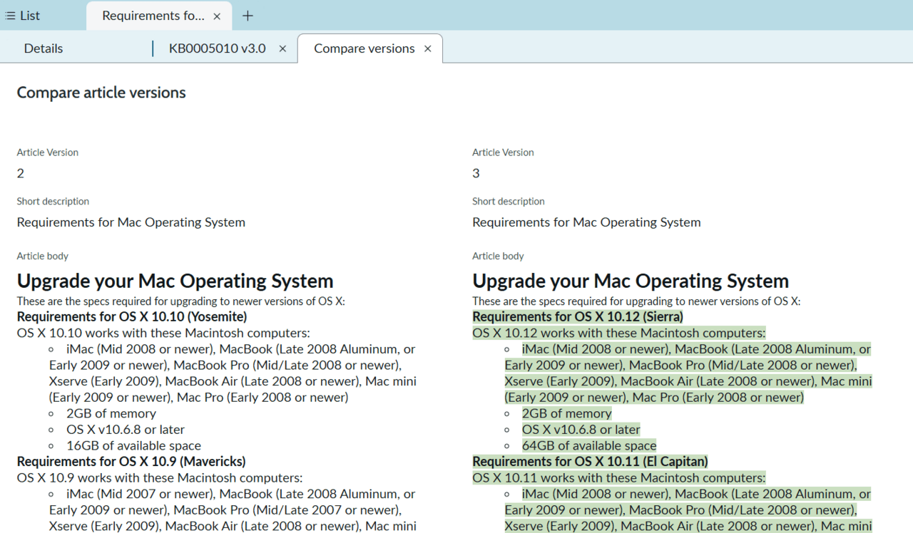 今回はServiceNowでバージョンの異なるナレッジ記事を比較する方法をご紹介します。